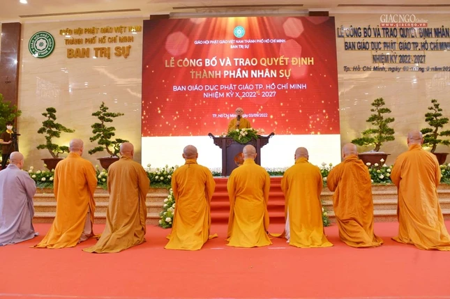 Tại hội nghị, Thượng tọa Thích Trung Nguyện, Phó Thư ký kiêm Chánh Văn phòng Ban Trị sự GHPGVN TP.HCM đã công bố Quyết định số 232/QĐ-BTS, ngày 28-7-2022 về việc chuẩn y thành phần nhân sự Ban Giáo dục Phật giáo GHPGVN TP.HCM do Hòa thượng Thích Lệ Trang, Trưởng ban Trị sự GHPGVN TP.HCM thay mặt Ban Thường trực Ban Trị sự ấn ký.