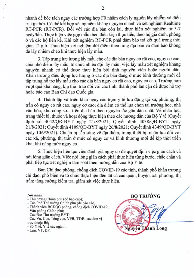GNO - Hôm nay, Bộ Y tế đã phổ biến công điện với các nội dung thay đổi quan trọng trong chiến lược phòng, chống dịch Covid-19 sau ngày 15-9-2021.