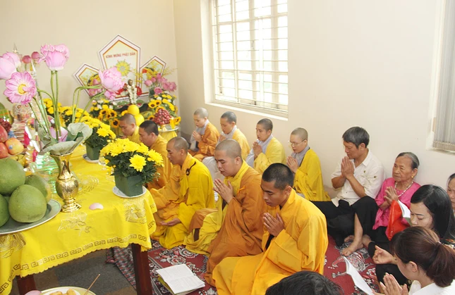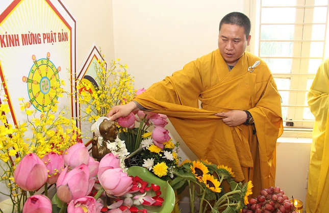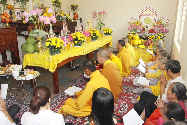 Buổi lễ diễn ra với các nghi thức truyền thống của Phật giáo miền Bắc: lễ thỉnh Phật, khóa lễ Đại Bi - Thập chú, tụng kinh Tám điều, nhiễu Phật và tắm Phật, đã diễn ra trang nghiêm.