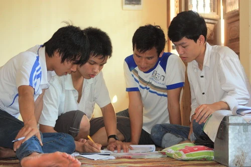 TS Vàng Sảo Tuấn (thứ 2 từ phải sang) đang ôn bài cùng các bạn