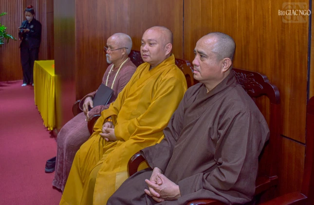 Đón tiếp phái đoàn có Trưởng lão Hòa thượng Viên Minh, Phó Pháp chủ Hội đồng Chứng minh; Trưởng lão Hoà thượng Thích Minh Thông, Phó Thư ký Hội đồng Chứng minh; Hòa thượng Thích Lệ Trang, Phó Chủ tịch Hội đồng Trị sự, Trưởng ban Nghi lễ T.Ư, Trưởng ban Trị sự GHPGVN TP.HCM; Thượng tọa Thích Giác Dũng, Thư ký Văn phòng Hội đồng Chứng minh, Thư ký Văn phòng Đức Pháp chủ; chư vị trong Ban Thường trực Ban Trị sự Phật giáo TP.HCM.