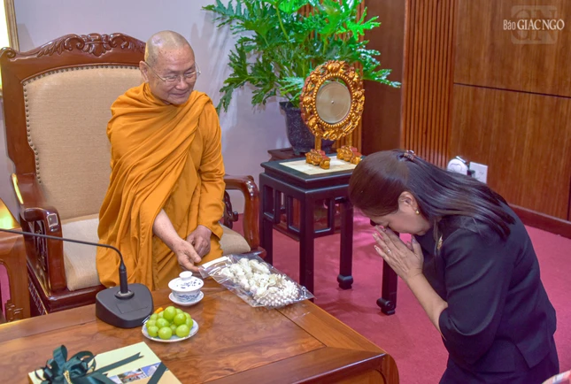 Cùng đi với đoàn có Hòa thượng Sawai Swchokito, nguyên Phó Viện trưởng Ngoại vụ Đại học Mahachulalongkorn (MCU) - Thái Lan; bà Wiraka Moodhitaporn, Tổng Lãnh sự Thái Lan tại TP.HCM; cùng các thành viên trong đoàn.