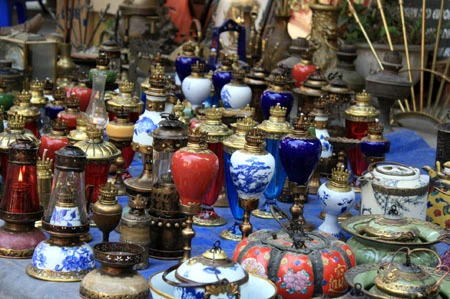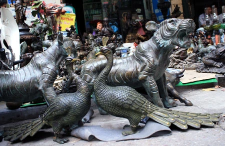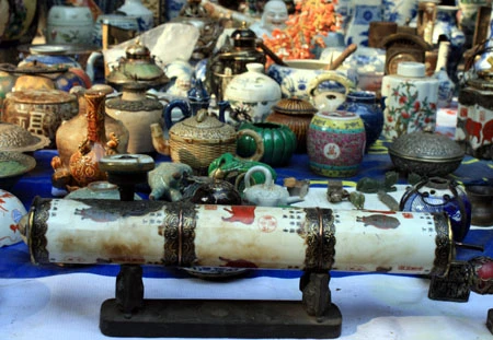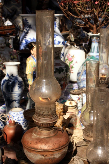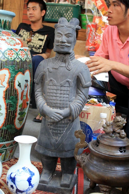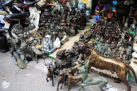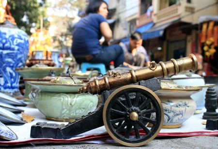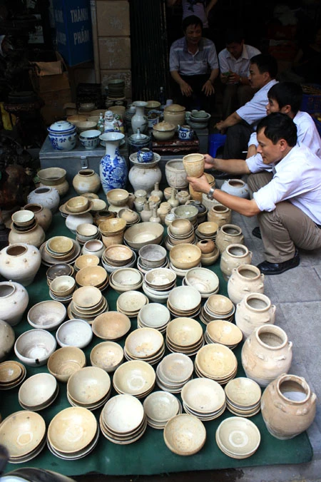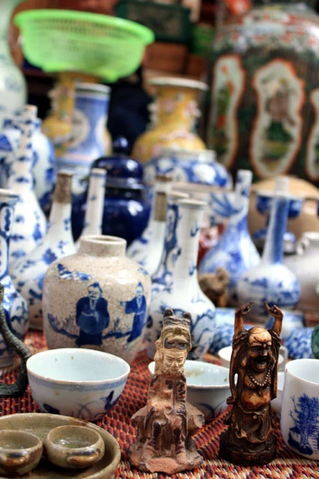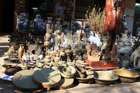 Du khách đến đây có thể ngắm nghía từ chiếc bình gốm Bát Tràng vuốt tay, những chiếc vò, thạp, thố, ấm, chén… đã sứt miệng, nứt quai, phai ố màu men bởi thời gian đến những chiếc rìu, rựa, dao hoen gỉ. Chiếc giá cắm nến bằng đồng, hay những bức tượng rồng, tượng nghê, thiềm thừ (cóc vàng), kim ngưu (trâu vàng), cá chép… cũng trở thành thứ hàng được bày bán.
