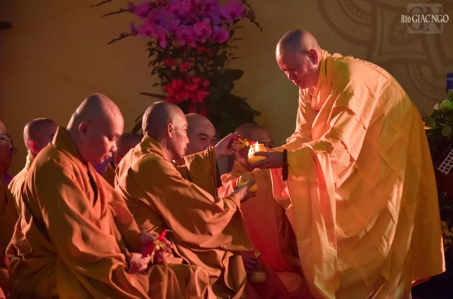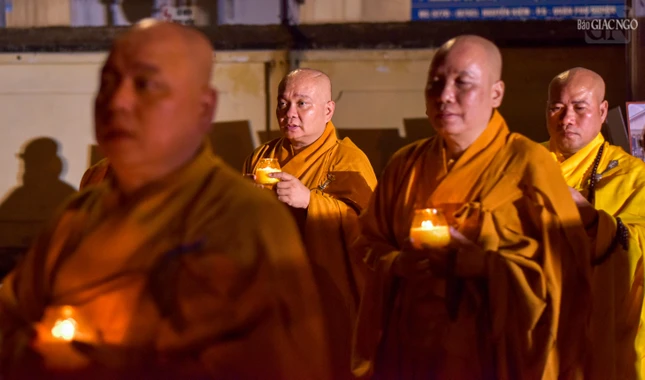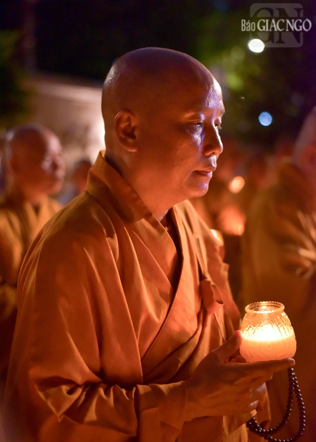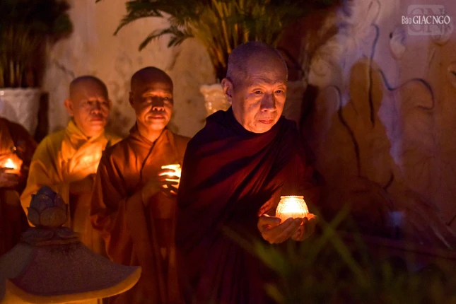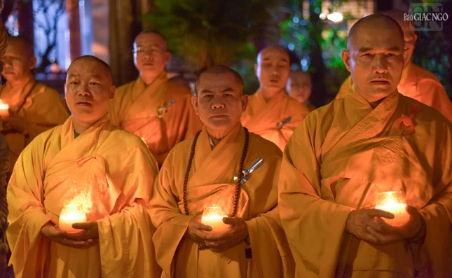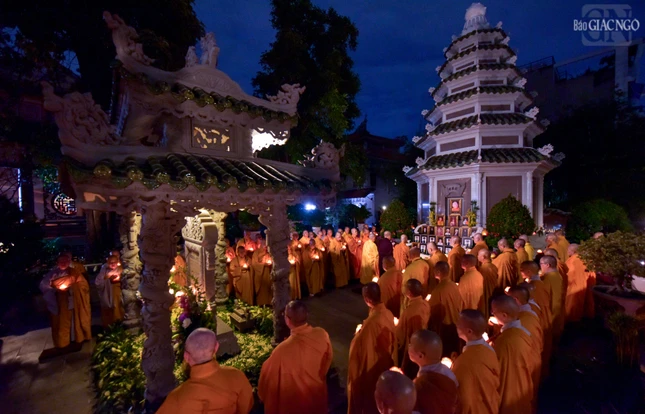 GNO - Trong không gian thiêng liêng tại bảo tháp Pháp Lạc (thiền viện Vạn Hạnh), hàng trăm ngọn nến được thắp sáng, thay lời tri ân sâu sắc của các Tăng Ni sinh khóa V - Học viện Phật giáo VN tại TP.HCM dâng lên Trưởng lão Hòa thượng Thích Minh Châu và quý giáo sư, giáo thọ sư, Tăng Ni sinh đã viên tịch.