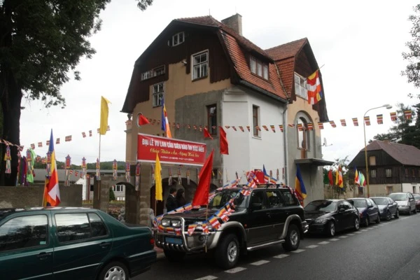 Đoàn rước ngọc Xá lợi đã diễu hành trên các đường phố chính của TP. Varnsdorf trước khi về tôn trí tại chính điện chùa Thiên Ân.