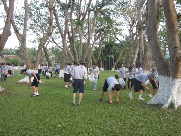 Sau một buổi chiều sinh hoạt vui vẻ tràn ngập tiếng cười tiếng hát dưới bóng mát và không khí trong lành của công viên. Theo chương trình đã định, huynh trưởng cấp Tấn Quảng Điền Phan Hữu Phước, Trưởng ban Đại diện Phân Ban tại quận Thanh Khê đã phát động và hướng dẫn huynh trưởng và đoàn sinh tham dự tiến hành công tác vệ sinh công cộng tại và quanh khu vực sinh hoạt.