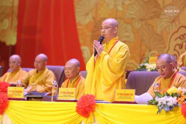 Thượng tọa Thích Quảng Tiến, Ủy viên Hội đồng Trị sự, Phó Chánh Văn phòng II T.Ư, thông qua thành phần nhân sự Ban Trị sự GHPGVN TP.Đà Nẵng nhiệm kỳ 2026-2031 đã được đại biểu thông qua trong phiên làm việc ngày thứ I, gồm 22 vị giáo phẩm Ban Chứng minh; 105 vị Ban Trị sự, trong đó Thường trực 35 vị, 60 vị Ủy viên và 10 Ủy viên dự khuyết, do Hòa thượng Thích Phước Minh làm Trưởng ban Trị sự.