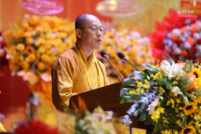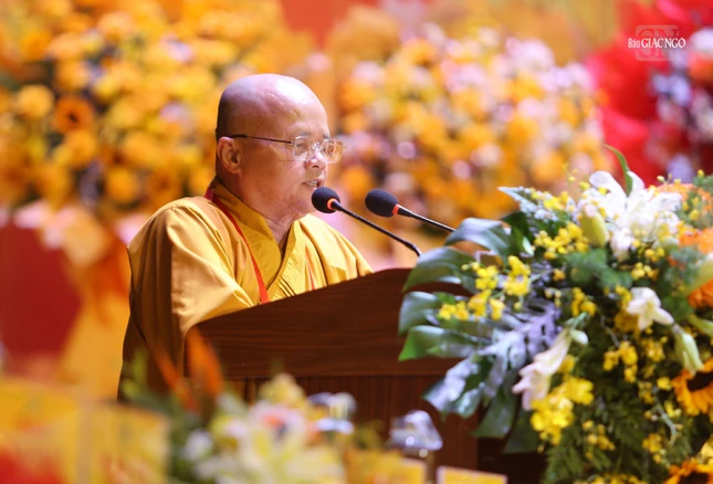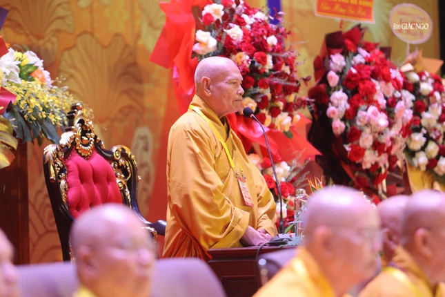 Phát biểu chỉ đạo của Trung ương GHPGVN, Trưởng lão Hòa thượng Thích Thiện Nhơn tán thán tinh thần đoàn kết, hòa hợp của Ban Trị sự Phật giáo TP.Đà Nẵng, hoàn thành tốt các hoạt động Phật sự với nhiều dấu ấn nổi bật thể hiện qua báo cáo tổng kết nhiệm kỳ 2022-2027.