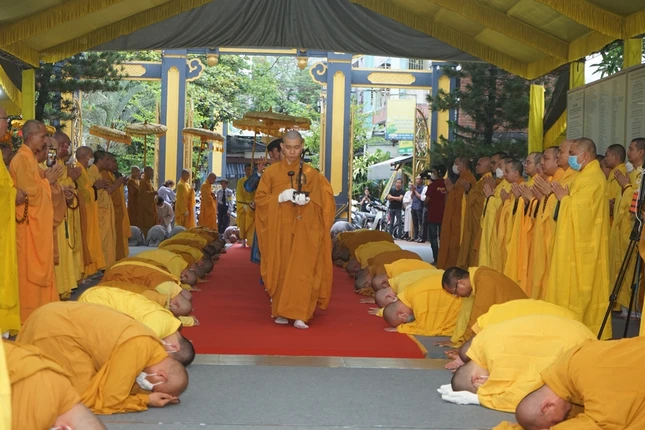 Sau lễ nhập kim quan, Ban Nghi lễ đã thực hiện nghi thức bạch Phật khai kinh, thỉnh Giác linh an vị và thọ tang cho môn đồ pháp quyến.