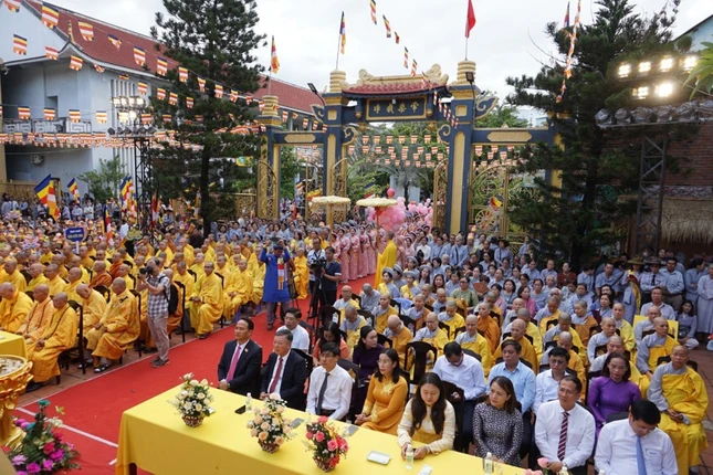 Về phía lãnh đạo TP.Đà Nẵng có ông Nguyễn Đình Vĩnh, Phó Bí thư Thường trực Thành ủy TP.Đà Nẵng; ông Lê Văn Trung, Thành ủy viên, Chủ tịch Ủy ban MTTQVN TP.Đà Nẵng; ông Trần Thắng Lợi, Ủy viên Ban Thường vụ Thành ủy, Trưởng ban Tuyên giáo và Dân vận Thành ủy TP.Đà Nẵng; bà Nguyễn Thị Anh Thi, Thành ủy viên, Phó Chủ tịch UBND TP.Đà Nẵng cùng đại diện lãnh đạo các cơ quan ban ngành thành phố, Q.Hải Châu, P.Phước Ninh; đông đảo đồng bào Phật tử các giới, Gia đình Phật tử, các đạo tràng tu học tại các cơ sở tự viện trên địa bàn thành phố đồng tham dự.