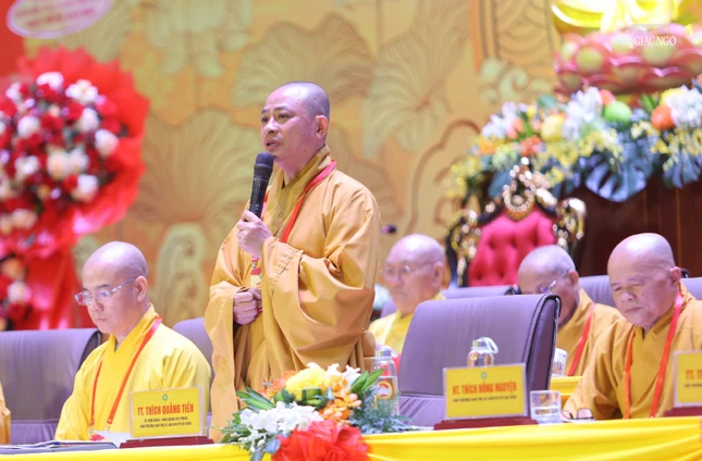 Cũng trong phiên làm việc chiều nay, đại hội được lắng nghe 2 bài tham luận chủ đề Giáo dục Phật giáo trong thời đại chuyển đổi số và định hướng hành động theo chủ đề: Kỷ cương - Đổi mới - Hiệu lực - Hiệu quả của Thượng tọa Thích Chúc Tín, Phó Trưởng ban Trị sự kiêm Trưởng ban Giáo dục Phật giáo TP; chủ đề Giải pháp bảo vệ tín tâm của người Phật tử của Thượng tọa Thích Pháp Châu, Phó Trưởng ban Trị sự kiêm Trưởng ban Hướng dẫn Phật tử TP, nêu lên việc phát huy tinh thần kế thừa, sức mạnh đoàn kết hòa hợp của Tăng-già, sự ổn định và phát triển bền vững ngôi nhà Phật giáo TP.Đà Nẵng luôn tỏa sáng trong nhiệm kỳ 2026-2031.