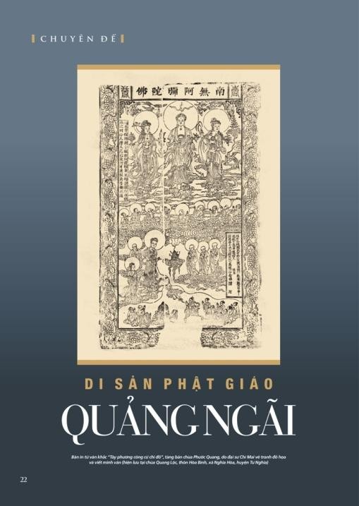 Quảng Ngãi với các cửa biển lớn và giao thông thuận lợi, trong quá khứ vùng đất này không chỉ là nơi trác tích hoằng đạo của bao lớp tăng nhân từ quê hương phía Bắc, mà còn chào đón nhiều vị cao tăng “hàng hải đông lai” dừng chân du hóa. Sự xuất hiện của nhiều ngôi cổ tự, nhiều thiền phái truyền thừa, các đại tòng lâm, đặc biệt là đại tòng lâm Vạn Phước ở Châu Me, Bình Sơn cùng nhiều ngôi cổ tự khác, với bề dày lịch sử đáng kính trong việc san khắc mộc bản kinh Phật, in ấn kinh điển lưu thông, chú tạo chuông tượng pháp khí... mà cho đến hôm nay vẫn còn được lưu giữ,... đã minh chứng cho sự dày dặn về một dòng chảy lịch sử Phật giáo trên mảnh đất này.