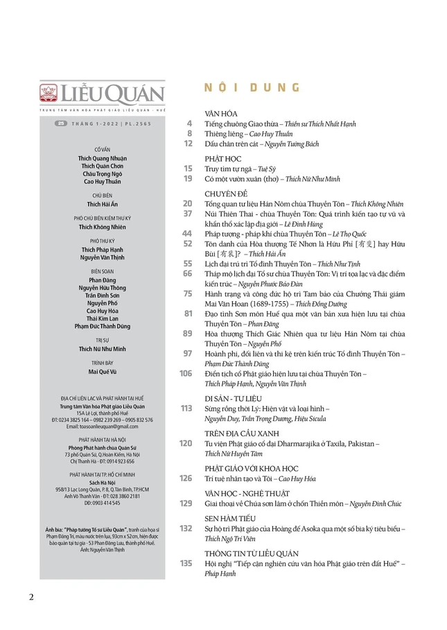 GNO - Trung tâm Văn hóa Phật giáo Liễu Quán vừa phát hành số 25, cũng là giai phẩm Xuân Nhâm Dần với chủ đề lần đầu tiên được thực hiện và công bố: Tự sở, truyền thừa và di sản tư liệu tổ đình Thuyền Tôn.