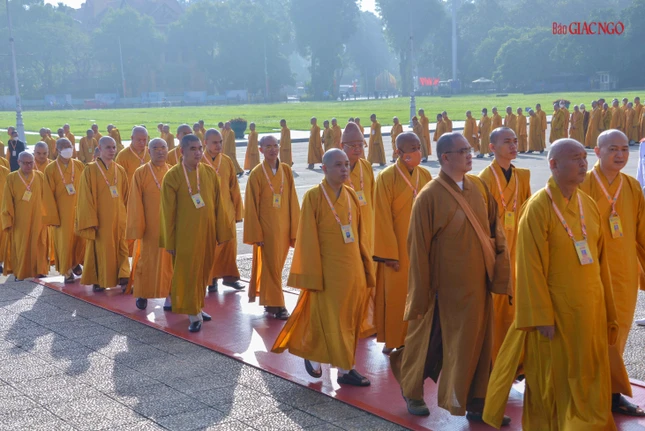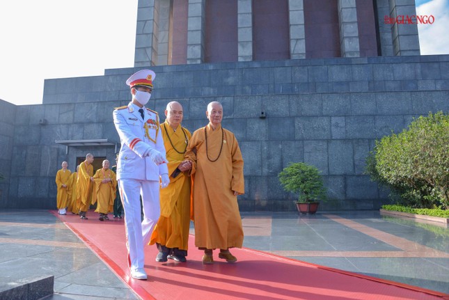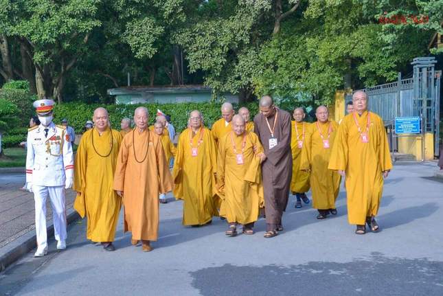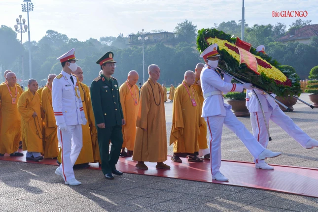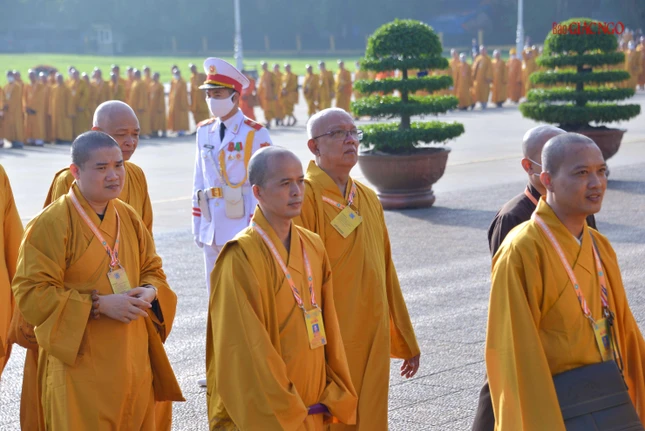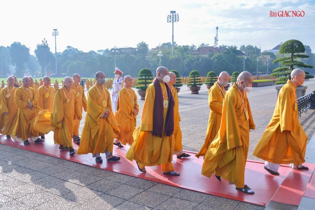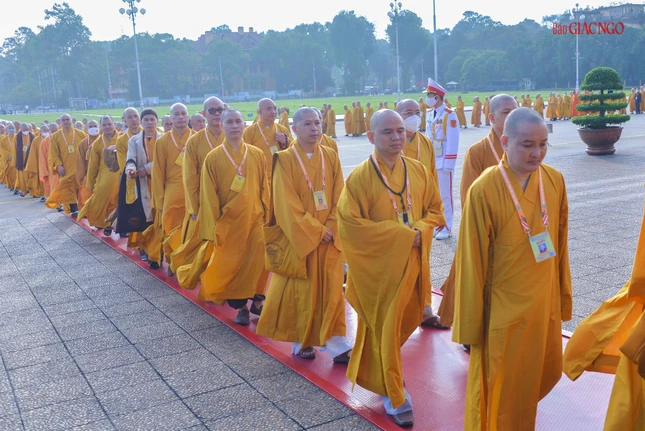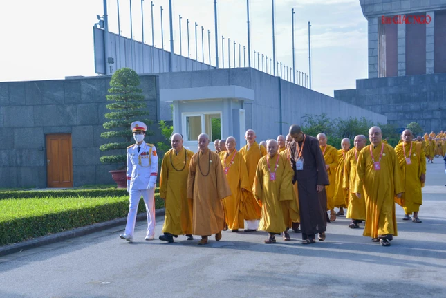Dẫn đầu đoàn viếng có Trưởng lão Hòa thượng Thích Trí Quảng, Quyền Pháp chủ GHPGVN, chư vị Trưởng lão Hội đồng Chứng minh; Hòa thượng Thích Thiện Nhơn, Chủ tịch Hội đồng Trị sự, chư tôn đức Hội đồng Trị sự, cùng chư tôn đức Tăng Ni, Phật tử đại biểu Phật giáo các tỉnh, thành trên khắp cả nước về Thủ đô tham dự Đại hội Phật giáo toàn quốc lần thứ IX, nhiệm kỳ 2022-2027.