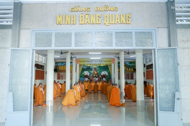 Tại đây, Hòa thượng Minh Giác có lời tri ân chư tôn đức Ban Kiến đàn đến thăm giới trường chùa Bửu Quang, điểm truyền giới cho giới tử Phật giáo Nam tông Kinh; Thượng tọa Thiện Hạnh đại diện Ban Điều hành bạch trình về công tác chuẩn bị tại giới trường chùa Bửu Quang.