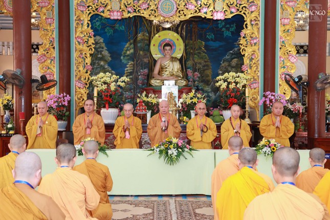 Hòa thượng Thích Lệ Trang, Ủy viên Thường trực Hội đồng Trị sự, Trưởng ban Trị sự GHPGVN TP.HCM, Chánh Chủ đàn; tháp tùng có chư tôn đức Phó ban Trị sự GHPGVN TP, Phó Chánh Chủ đàn: Hòa thượng Thích Nhật Hỷ, Thượng tọa Thích Thiện Quý, Thượng tọa Thích Quang Thạnh; chư tôn đức thành viên Ban Kiến đàn, Ban Thư ký.