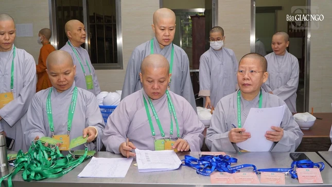 Theo đó, từ 5 giờ 30 sáng nay, với 94 giới tử Ni hệ phái Bắc tông gồm: 55 giới tử Tỳ-kheo-ni, 21 giới tử Thức-xoa-ma-na và 21 giới tử Sa-di-ni đến từ TP.Thủ Đức, các quận huyện TP.HCM lần lượt có mặt làm các thủ tục nhập chúng tại điểm truyền giới chùa Thanh Tâm.