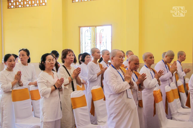“Tất cả người đệ tử Phật, dù xuất hay tại gia cần phải sống trong tinh thần tôn trọng, hòa hợp, vì không hòa hợp sẽ không thể đóng góp gì cho cuộc đời này. Bên cạnh việc học pháp, mỗi người phải nỗ lực tu, rèn luyện tâm của mình, thấy được vạn pháp đều do duyên sinh, để xây dựng đời tu của mình luôn được an vui.”, Hòa thượng nhấn mạnh.