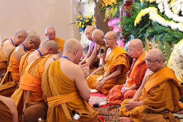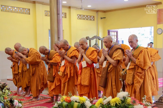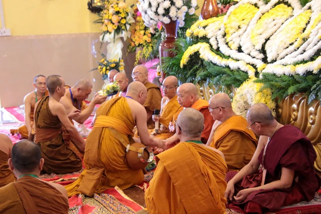 GNO - Sáng nay, 22-11 (10-10-Quý Mão), tại chùa Bửu Quang (P.Bình Chiểu, TP.Thủ Đức), sau khi chính thức khai mạc giới trường, Hội đồng Thập sư Tăng hệ phái Phật giáo Nam tông Kinh đã truyền giới cho các giới tử biệt truyền trong khuôn khổ Đại giới đàn Bửu Huệ Phật lịch 2567.