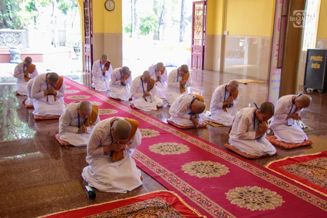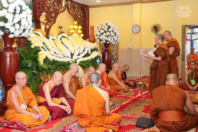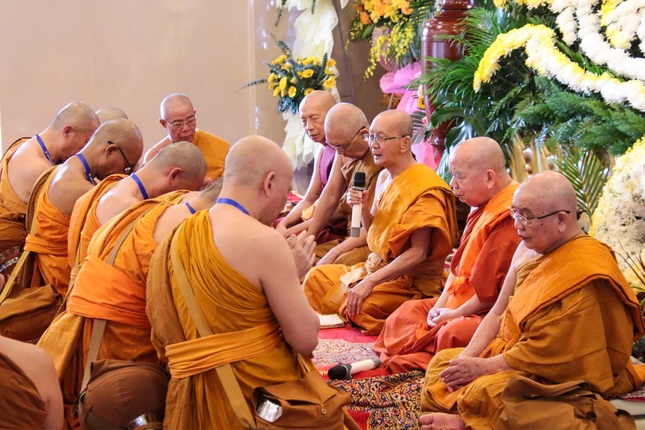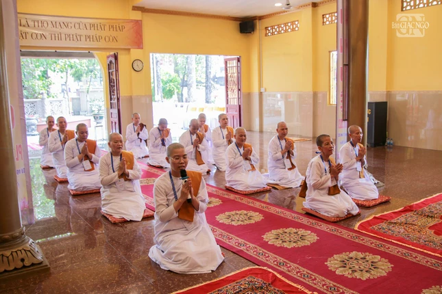 14 vị nữ tu vân tập trước Hội đồng Thập sư, tác pháp cầu thọ giới Tu nữ. Sau khi nhận giới, Hội đồng Thập sư đã tụng kinh chúc lành đến các vị tân Tu nữ.