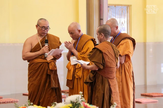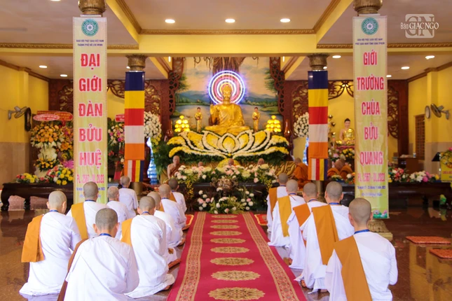 Đại diện Ban Kiến đàn đã cung thỉnh Hòa thượng Thiện Tâm, Phó Chủ tịch Hội đồng Trị sự, đương vi Hòa thượng Đường đầu; Hòa thượng Hộ Chánh làm Yết-ma A-xà-lê; Hòa thượng Minh Giác làm Giáo thọ A-xà-lê, cùng chư vị tôn chứng: Hòa thượng Thiện Nhân, Hòa thượng Tăng Định, Hòa thượng Pháp Chất, Thượng tọa Thiện Hạnh, Thượng tọa Thiện Đạt, Thượng tọa Quang Minh, Thượng tọa Pháp Nhiên truyền giới cho 28 giới tử Tỳ-kheo, Sa-di và Tu nữ cầu thọ giới pháp.