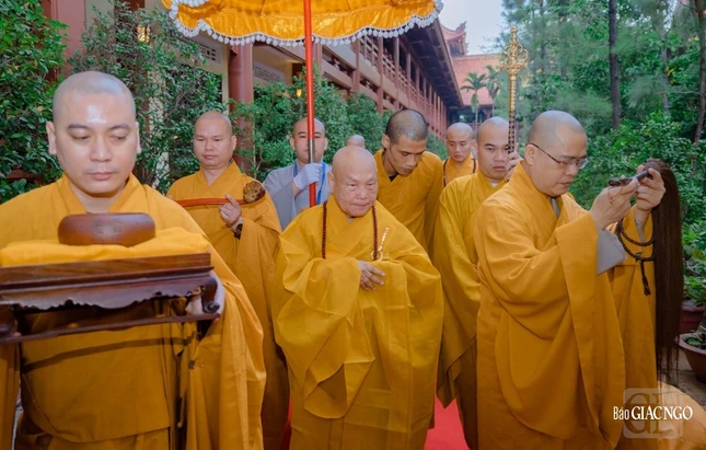 Thượng tọa Thích Trí Thông, Đại đức Thích Nguyên Hưng cùng chư tôn đức Ban Nghi lễ làm điển lễ, dẫn thỉnh.