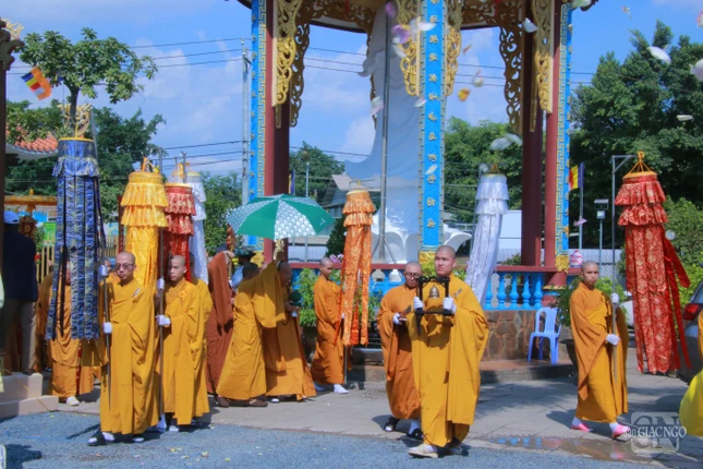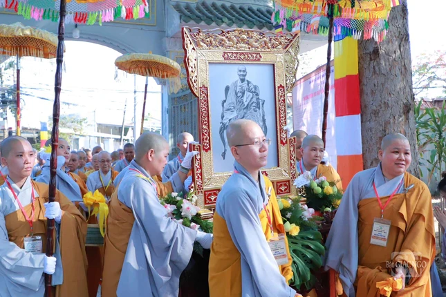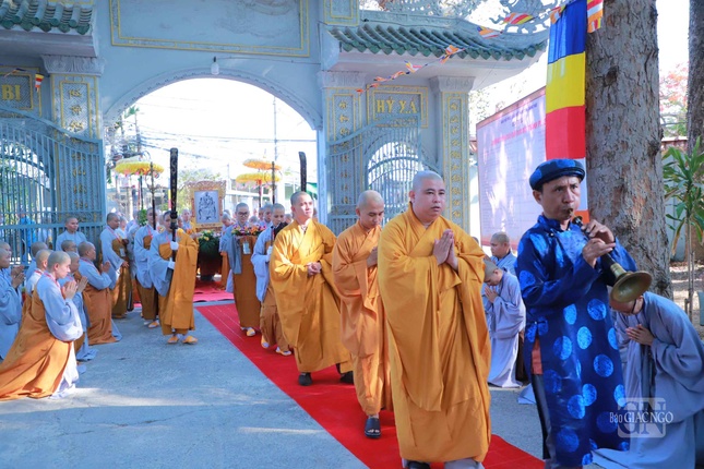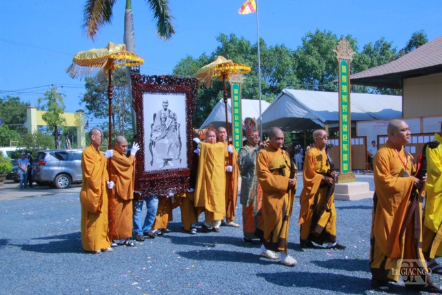 Chư tôn đức Ban Kiến đàn, các giới tử đã cung nghinh đoàn rước di ảnh và giới bổn theo nghi thức Phật giáo.