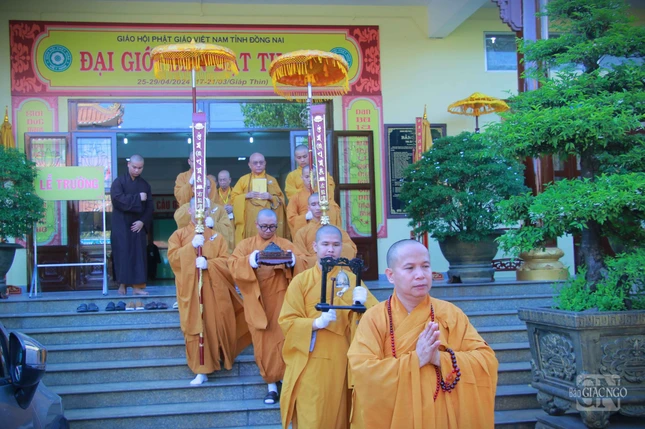GNO - Chiều 25-4, Ban Kiến đàn Đại giới đàn Đạt Thanh đã đến tổ đình Long Thiền cử hành lễ cung thỉnh di ảnh Đại lão Hòa thượng Đạt Thanh và giới bổn về chùa Tỉnh Hội - giới trường Tăng, đồng thời chư Ni trong Ban Kiến đàn cũng đã cung thỉnh di ảnh từ chùa Bửu Phong về chùa Phước Hội - giới trường Ni.