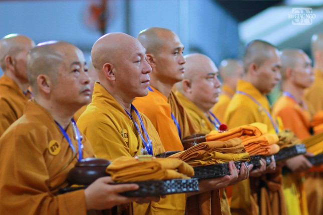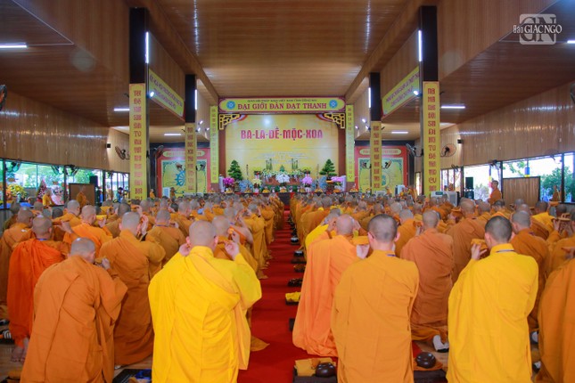 Sau lời tác bạch cung thỉnh của đại diện giới tử, chư tôn đức giới sư quang lâm giới trường. Giới tử chí thành đảnh lễ nghinh đón.