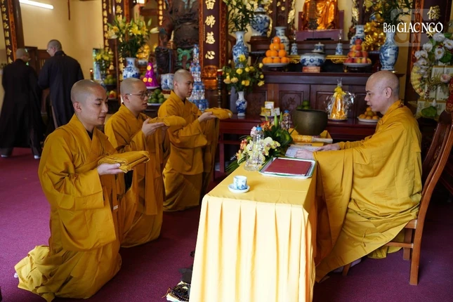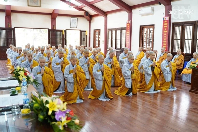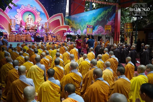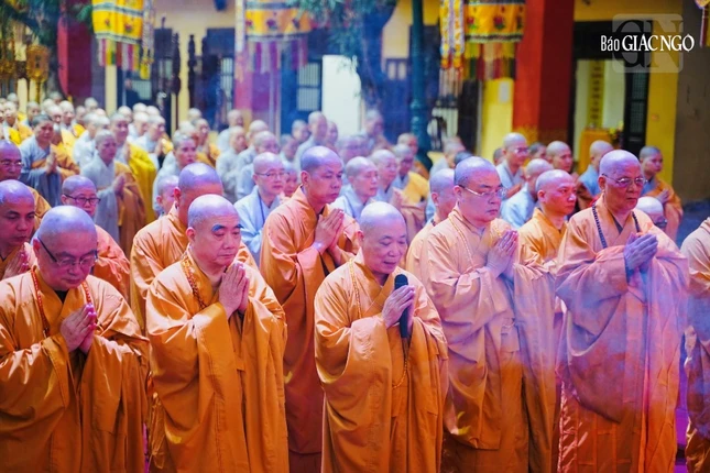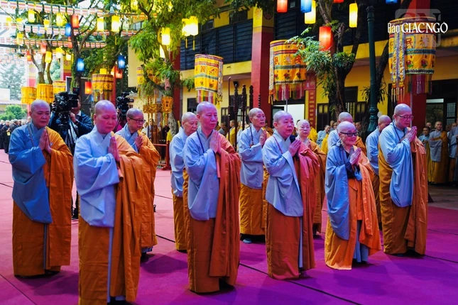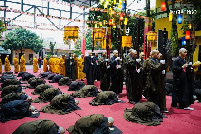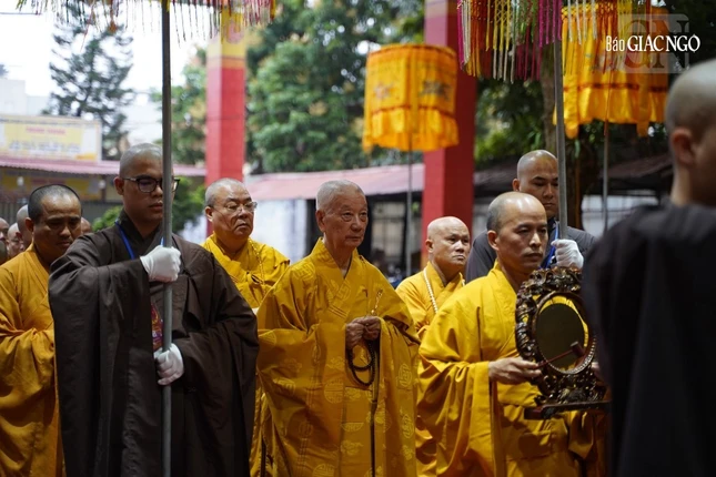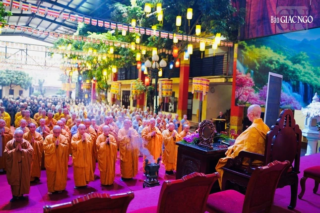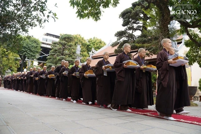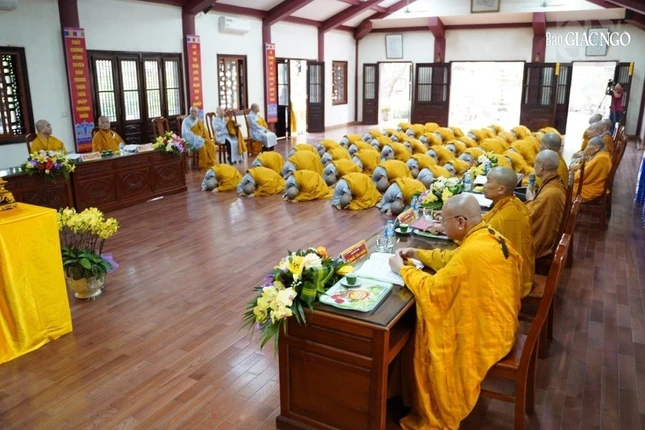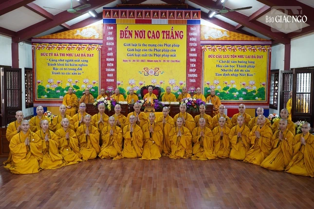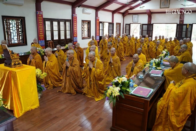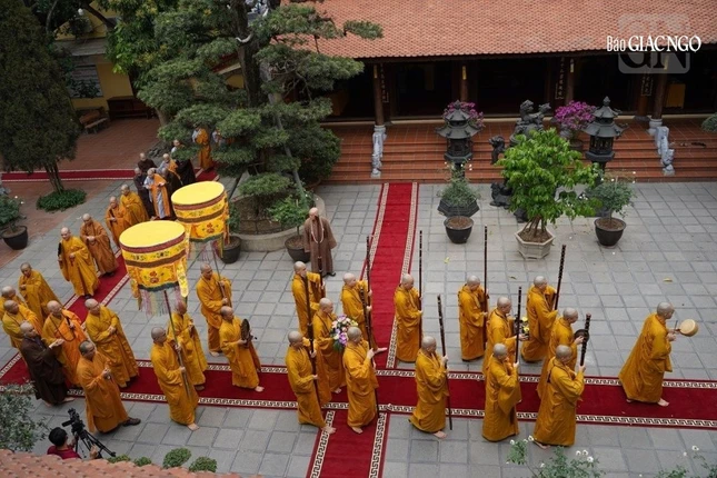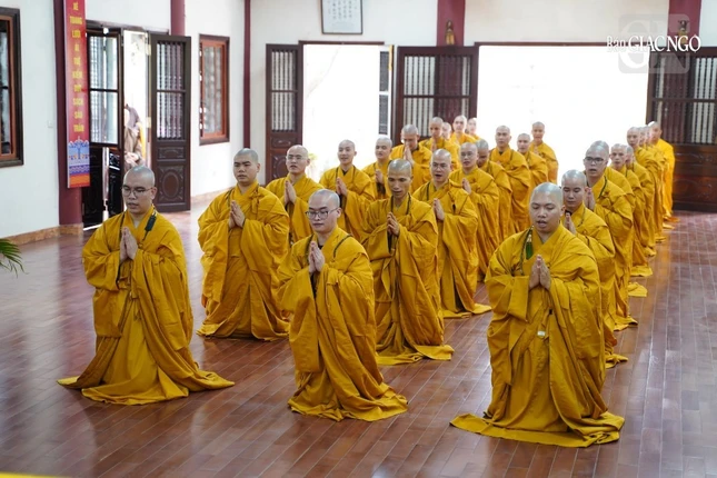 Theo đó, Ban Kiến đàn đã cung thỉnh Đức Pháp chủ GHPGVN - Trưởng lão Hoà thượng Thích Trí Quảng, Hoà thượng Đàn đầu cùng Hội đồng Thập sư Tăng, Ni quang lâm lễ đường.