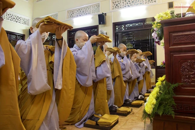 Sau khi viên thành giới thể, chư tôn đức Ni hướng dẫn giới tử đảnh lễ tri ân Đại Tăng, đã thương tưởng mà trao truyền Chánh pháp của Đức Như Lai cho hàng Ni lưu, kính nguyện trọn đời vâng giữ và thực hành.