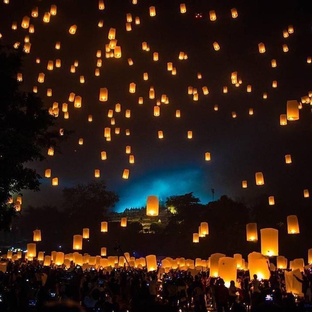 Indonesia là quốc gia có di sản Phật giáo lớn nhất thế giới - Borobudur. Vào ngày Phật đản những năm trước, mọi người tham gia lễ rước Phật bắt đầu tại Mendut - ngôi tự viện Phật giáo lâu đời nhất của Indonesia và kết thúc tại Borobudur. Trước khi đến chùa, một số người còn tẩy tịnh các tượng Phật tại nhà, thăm hỏi người già và tổ chức quyên góp cho những người khó khăn. Ban đêm, họ thả đèn trời và thắp nến.