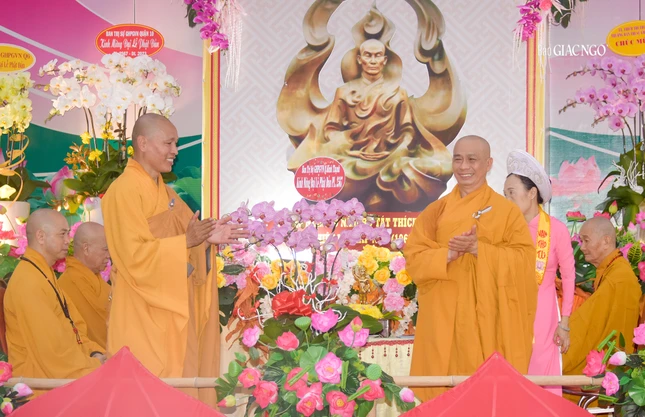 Trong không khí trang nghiêm, thanh tịnh, chư tôn đức Tăng Ni, lãnh đạo chính quyền các cấp dưới sự hướng dẫn của Hòa thượng Thích Nhựt Hỷ đã dâng hương, tụng kinh Khánh đản dâng lên cúng dường Đức Phật trong ngày lễ đản sinh.