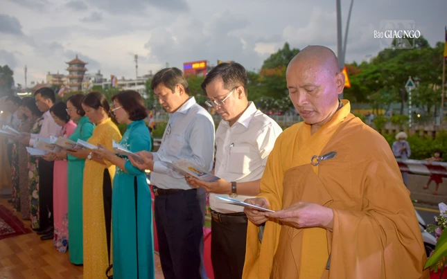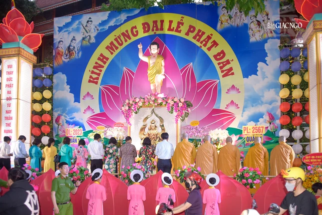 GNO - Chiều 14-4-ÂL (1-6-2023), toàn thể Tăng Ni, Phật tử Q.1 đã vân tập về lễ đài tổ đình Vạn Thọ để tham dự Đại lễ Phật đản Phật lịch 2567 do Ban Trị sự Phật giáo quận tổ chức.