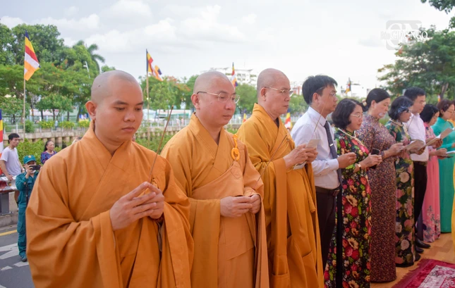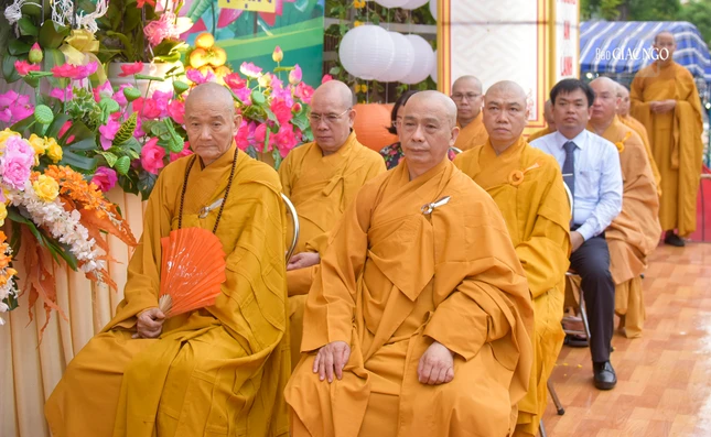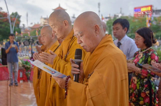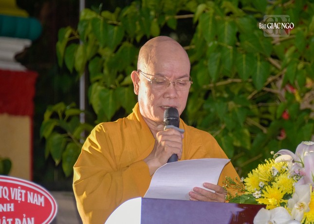 Tiếp đó, toàn thể đại chúng lắng lòng nghe Trưởng lão Hòa thượng Thích Thanh Hùng tuyên đọc Thông điệp Đại lễ Phật đản Phật lịch 2567 của Đức Pháp chủ GHPGVN gửi đến toàn thể Tăng Ni, Phật tử.