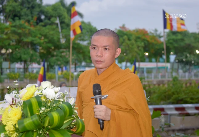 Thượng tọa Thích Minh Quang, Trưởng ban Trị sự Phật giáo Q.1 đọc Diễn văn Phật đản của Hòa thượng Chủ tịch Hội đồng Trị sự GHPGVN.