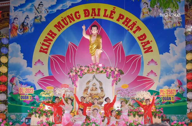 Tối cùng ngày, Ban Trị sự GHPGVN Q.1 cũng tổ chức văn nghệ cúng dường và phục vụ đông đảo người dân trong dịp Đại lễ Phật đản Phật lịch 2567.