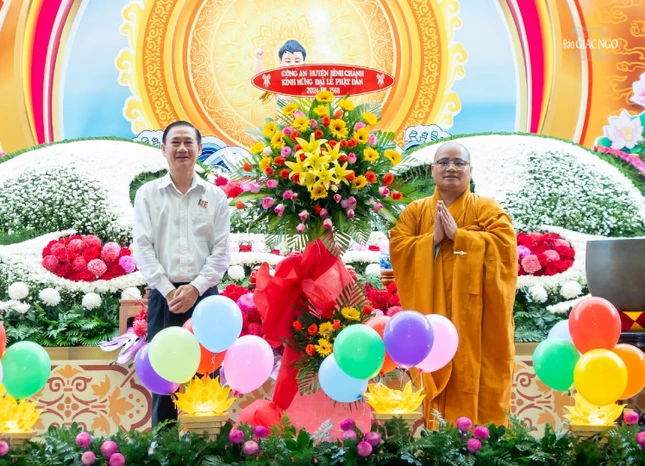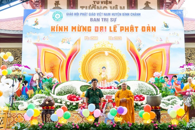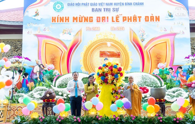 Phát biểu tại buổi lễ, ông Huỳnh Văn Phạm Hồng, đại diện lãnh đạo H.Bình Chánh có lời chúc mừng Phật đản an vui đến toàn thể giới Phật giáo trên địa bàn huyện và mong rằng Ban Trị sự, chư Tăng Ni tiếp tục phát huy tinh thần sống tốt đạo, đẹp đời, đồng hành cùng chính quyền trong các công tác an sinh xã hội.