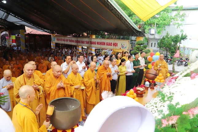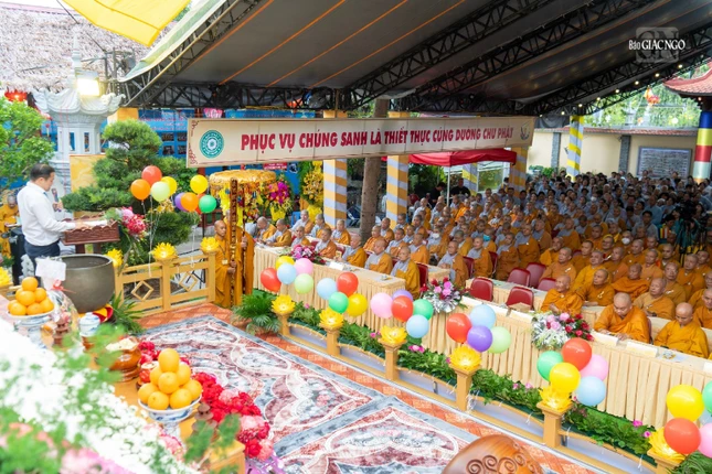 Sau khi niệm Phật cầu gia bị, Trưởng lão Hoà thượng Thích Như Tín đã tuyên đọc Thông điệp Đại lễ Phật đản Phật lịch 2568 của Đức Pháp chủ GHPGVN; Hòa thượng Thích Huệ Minh đọc Diễn văn Phật đản Phật lịch 2568 của Trưởng lão Hòa thượng Chủ tịch Hội đồng Trị sự GHPGVN gửi đến toàn thể Tăng Ni, cư sĩ Phật tử Việt Nam trong và ngoài nước.