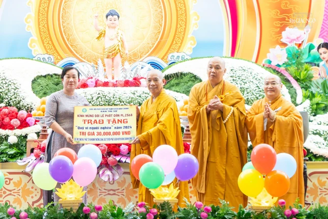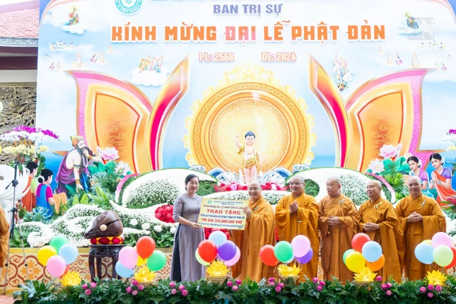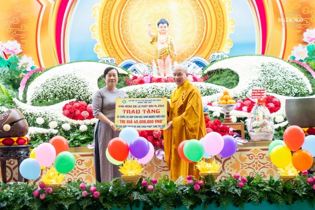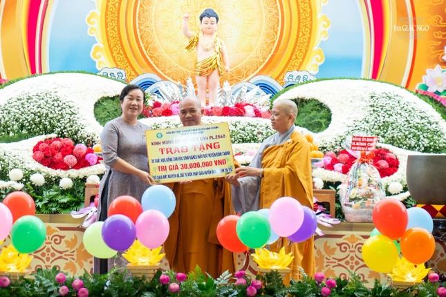Nhân dịp này, Ban Trị sự GHPGVN H.Bình Chánh đã trao tặng đến Ủy ban MTTQVN H.Bình Chánh số tiền 30 triệu đồng ủng hộ Quỹ “Vì người nghèo”; 20 suất học bổng trị giá 30 triệu đồng; 30 chiếc xe đạp cho trẻ em nghèo hiếu học trị giá 45 triệu đồng; 500 phần quà cho những gia đình có hoàn cảnh khó khăn trị giá 325 triệu đồng.