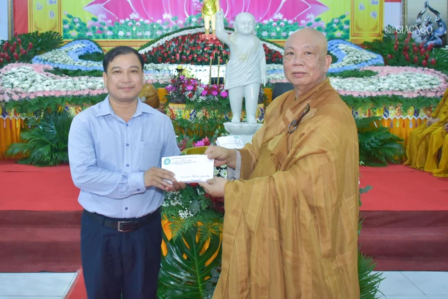 Dịp này, Ban Trị sự Phật giáo H.Nhà Bè đã trao tặng “Nhà tình nghĩa quân dân”, hỗ trợ Quỹ “Vì người nghèo” và trao tặng số tiền ủng hộ người dân khó khăn đến chính quyền địa phương.