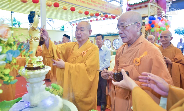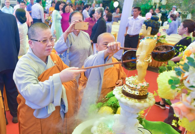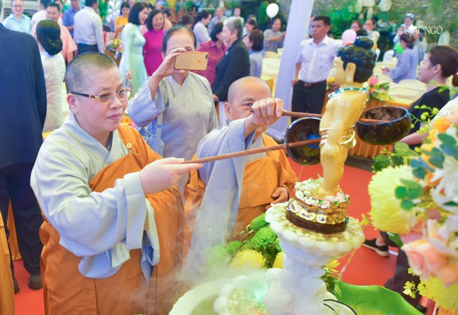 | Chư tôn đức thực hiện nghi thức Tắm Phật |