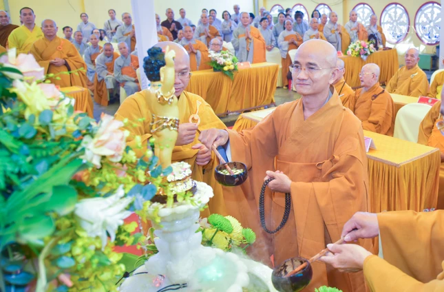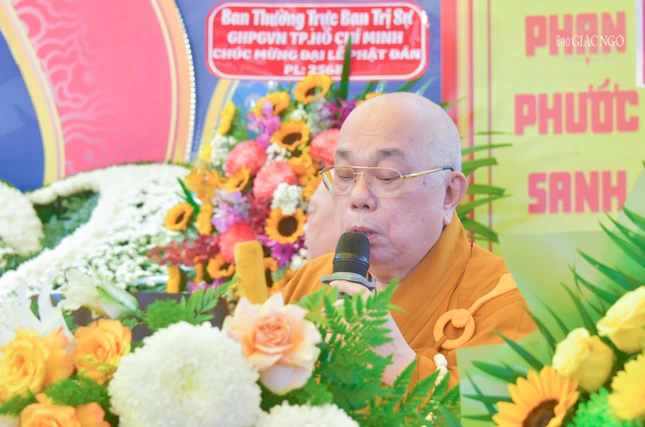 Thượng tọa Thích Huệ Công đọc Diễn văn Phật đản Phật lịch 2568 của Trưởng lão Hòa thượng Chủ tịch Hội đồng Trị sự gửi đến toàn thể Tăng Ni, Phật tử.