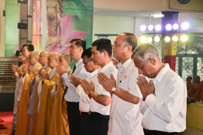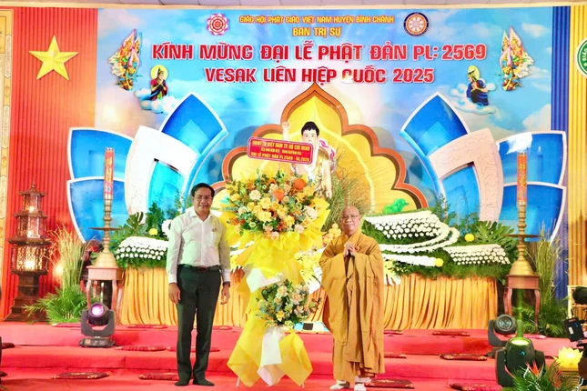 Tiếp đó, Hòa thượng Thích Huệ Minh đọc Diễn văn Phật đản Phật lịch 2569 của Trưởng lão Hòa thượng Chủ tịch Hội đồng Trị sự GHPGVN; Thượng tọa Thích Phước Tiến, Phó Trưởng ban Trị sự GHPGVN H.Bình Chánh đọc Thông điệp Đại lễ Vesak 2025 của Tổng Thư ký Liên Hiệp Quốc.