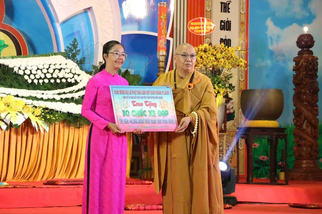 Dịp này, Ban Trị sự GHPGVN H.Bình Chánh đã trao tặng đến UBND huyện 600 cây xanh trang trí Khu Di tích Láng Le Bàu Cò với trị giá 180 triệu đồng; tặng 200 phần quà trị giá 100 triệu đồng cho những gia đình có hoàn cảnh khó khăn; trao 30 chiếc xe đạp trị giá 50 triệu đồng cho trẻ em nghèo hiếu học.