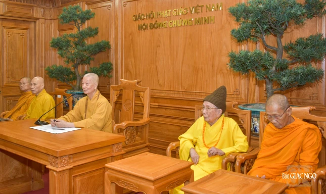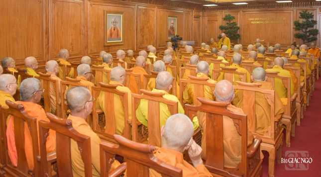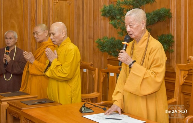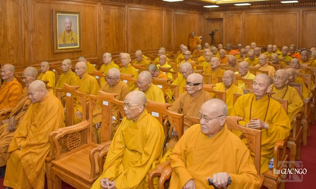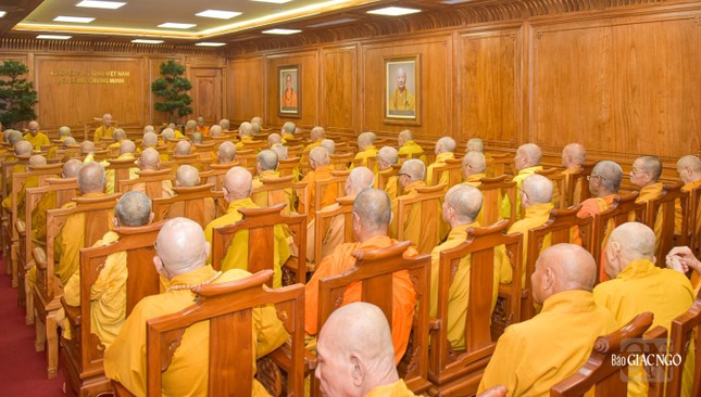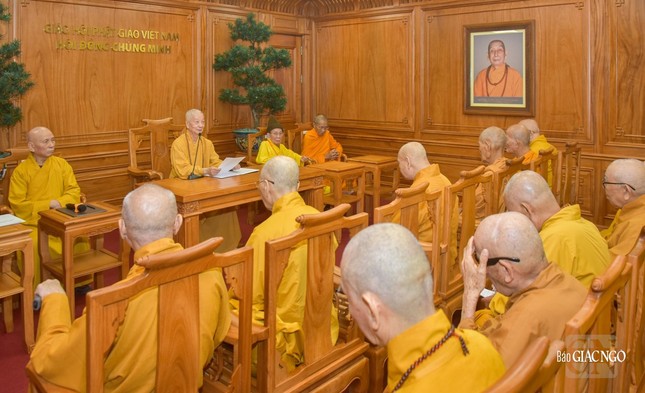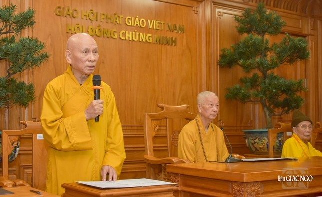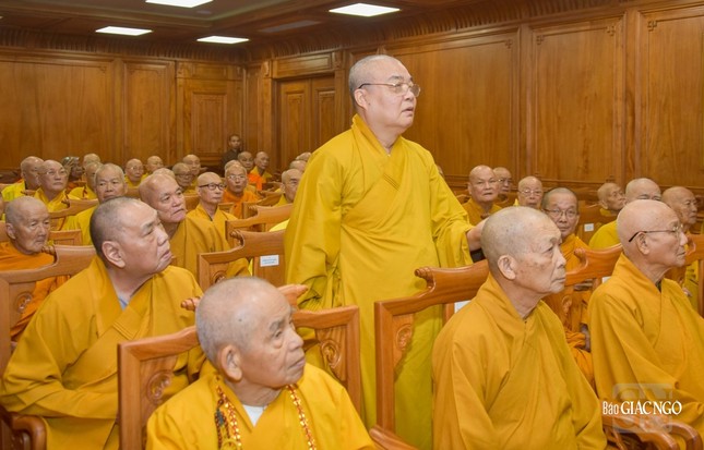 Đức Pháp chủ cũng đã chỉ định Trưởng lão Hòa thượng Thích Giác Quang, Phó Pháp chủ điều hành phần trình bày lại và lấy ý kiến biểu quyết các vấn đề đã được Ban Thường trực thảo luận, nhận định và thống nhất trong phiên họp hôm qua, 21-12-2023.