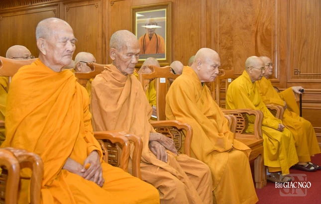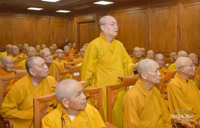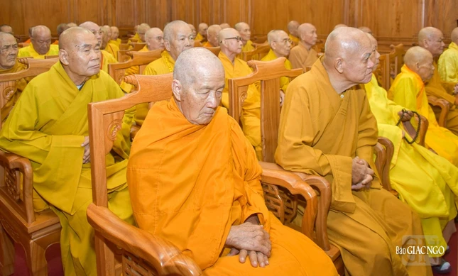 Sau khi niệm hồng danh Đức Phật Bổn Sư Thích Ca Mâu Ni, toàn thể chư vị Trưởng lão đã dành một phút mặc niệm tưởng nhớ cố Trưởng lão Hòa thượng Dương Nhơn, Phó Pháp chủ GHPGVN và chư vị Trưởng lão Thành viên Hội đồng Chứng minh viên tịch trong năm qua.