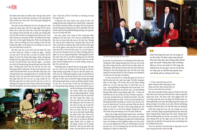 Cu Bon nay đã lớn và trong thời gian đi du học ở Mỹ đã mấy năm rồi, năm nào ngày Tết đến cũng gọi điện về nói rằng: “Tết ở bên này có đủ bánh chưng bánh tét, có hoa mai hoa đào, có luôn bầu cua cá cọp… nhưng không có không khí như ở quê nhà. Con thèm nhớ những món ăn mà mẹ nấu, con nhớ không khí gia đình mình trong những ngày Tết… À nữa con nhớ lắm hai cái vạt áo dài của mẹ, rồi khóc rưng rức... Cúp máy, tôi ngồi nhớ con rồi khóc thút thít.
