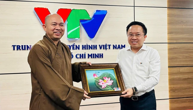 Thượng tọa Thích Đức Thiện thông tin và trao đổi với lãnh đạo VTV |