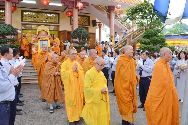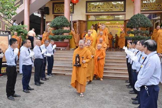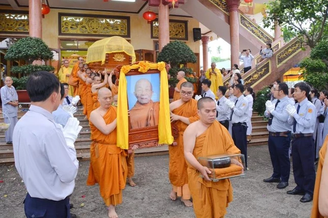 Sau đó, Hòa thượng Giác Pháp và Ban Nghi lễ thực hiện nghi thức di quan, môn đồ pháp quyến cung thỉnh bát hương, y bát, di ảnh cố Hòa thượng Thích Giác Phương rời Giác linh đường tịnh xá Ngọc Quang đến Đài hỏa táng Vĩnh Lương (TP.Nha Trang) trà-tỳ trong tiếng niệm Phật của đông đảo Tăng Ni, Phật tử.